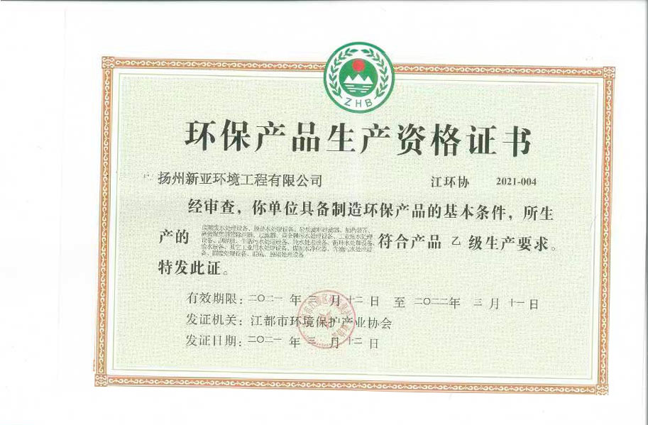 环保产品生产资格证书