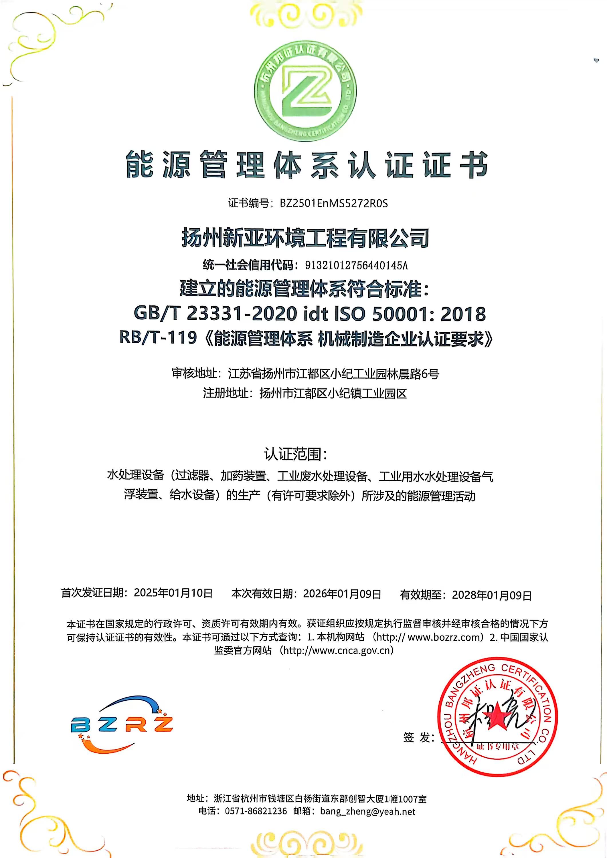 能源管理体系认证证书